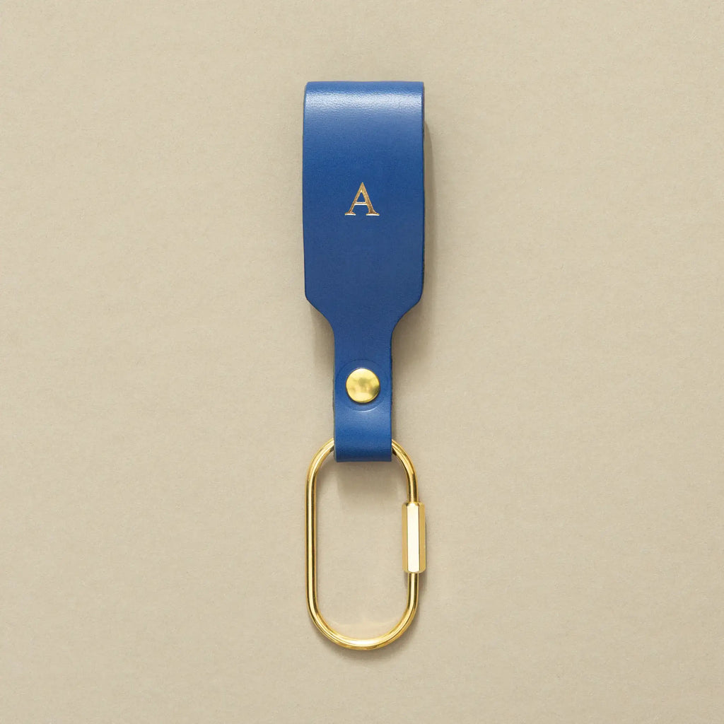 Schlüsselanhänger Blau mit Karabiner Gold – aus Premium Leder