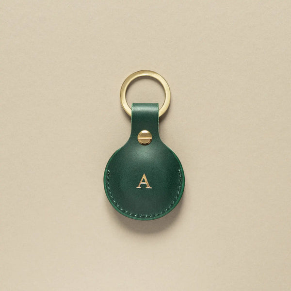 AirTag Schlüsselanhänger Tannengrün mit Ring Gold – aus Premium Leder