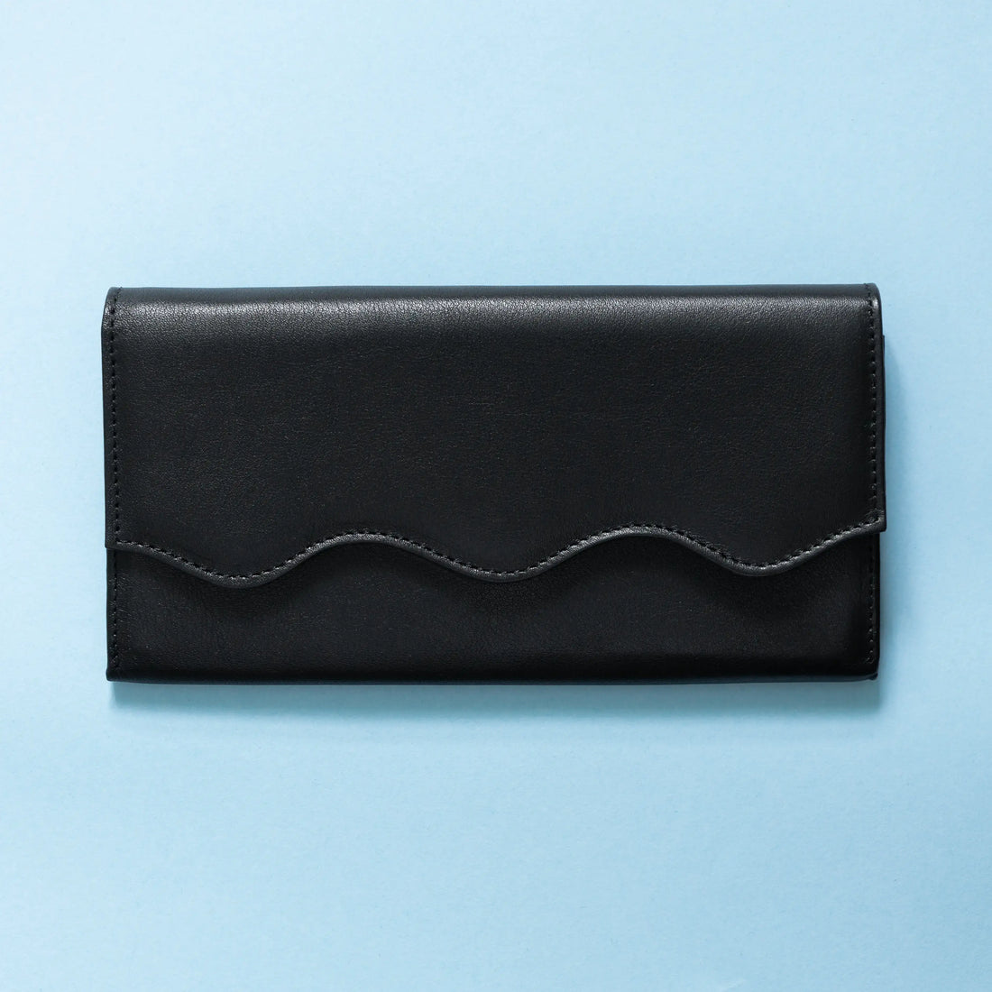 Portefeuille long et fin ondulé noir - fabriqué en cuir nappa de première qualité