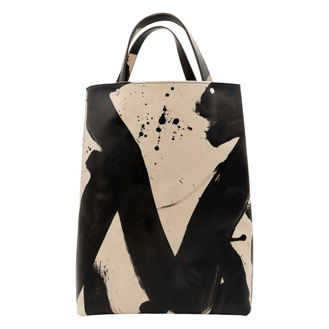 Sac Shopper Abstrait Peint à la Main – fabriqué en cuir olive tanné végétal de première qualité®