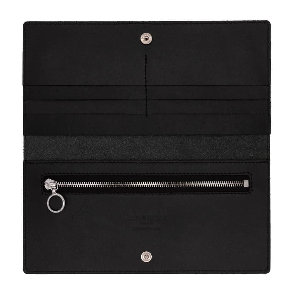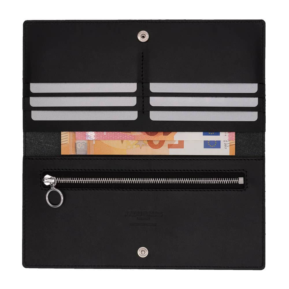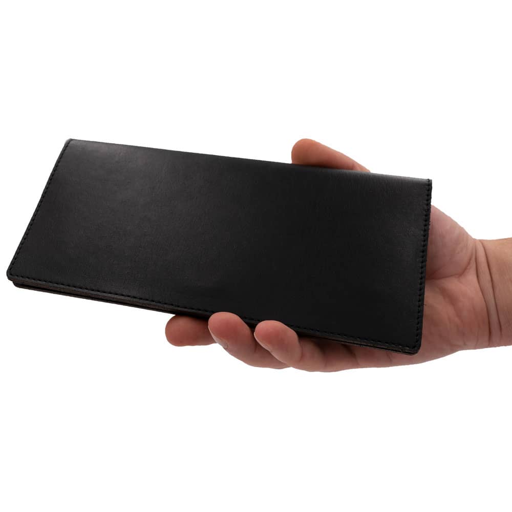 Portefeuille long, fin et pliable, noir – fabriqué en cuir tanné végétal de première qualité