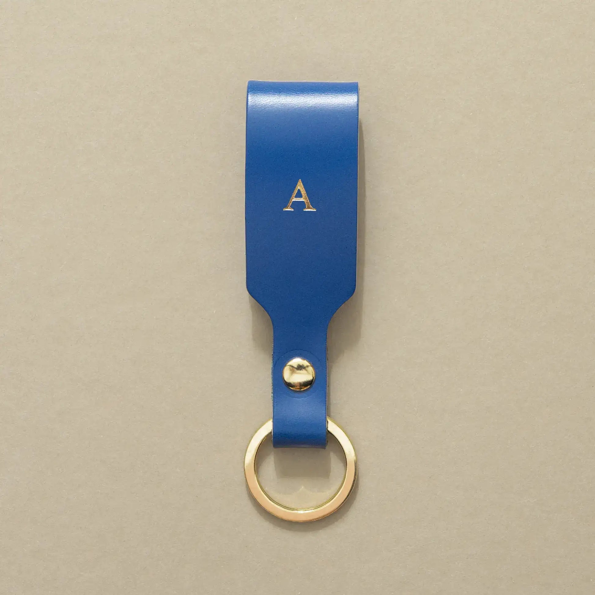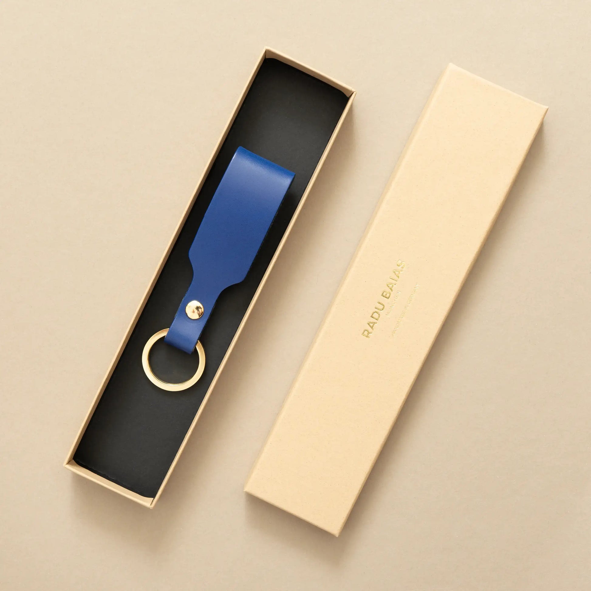 Porte-clés bleu avec anneau doré – en cuir de qualité supérieure
