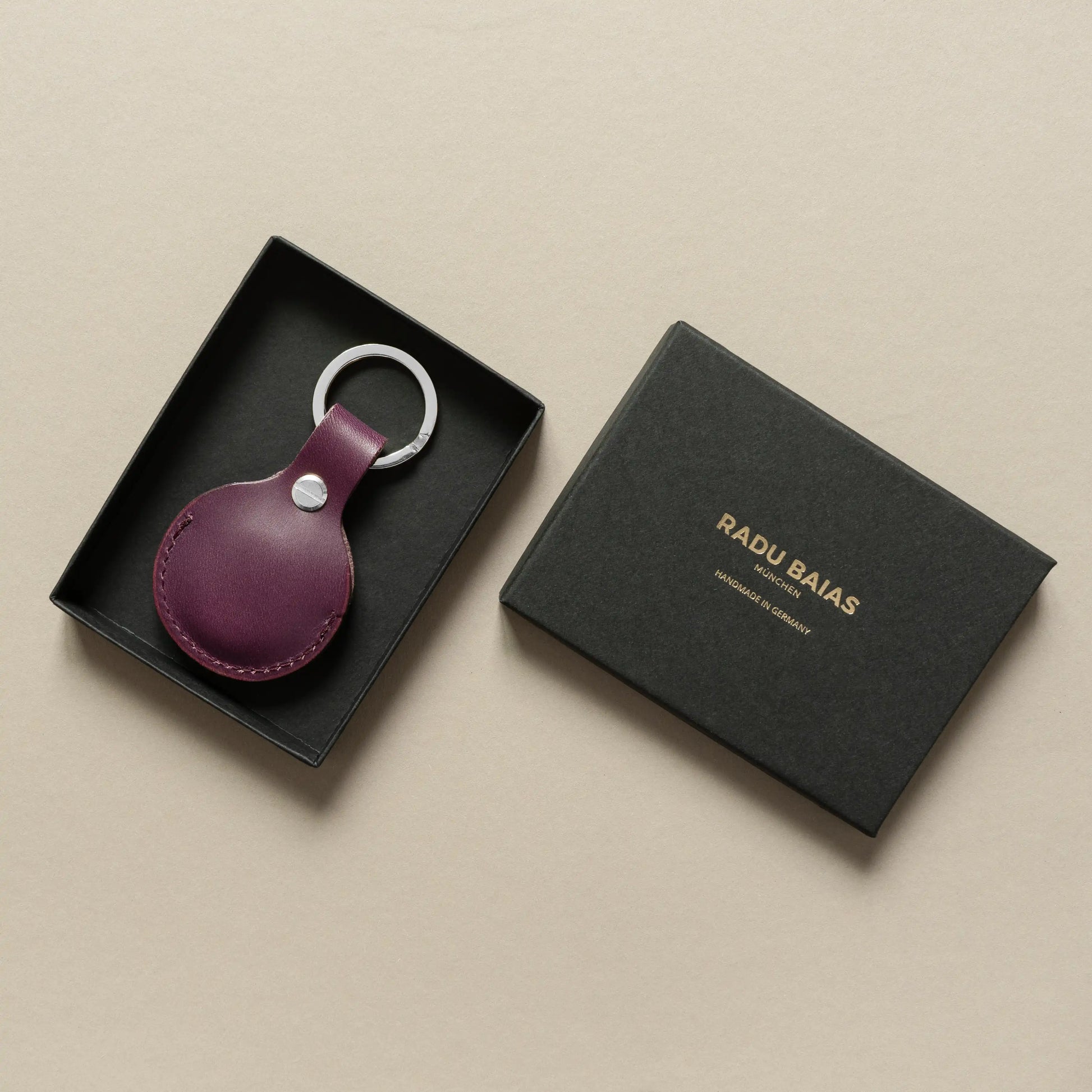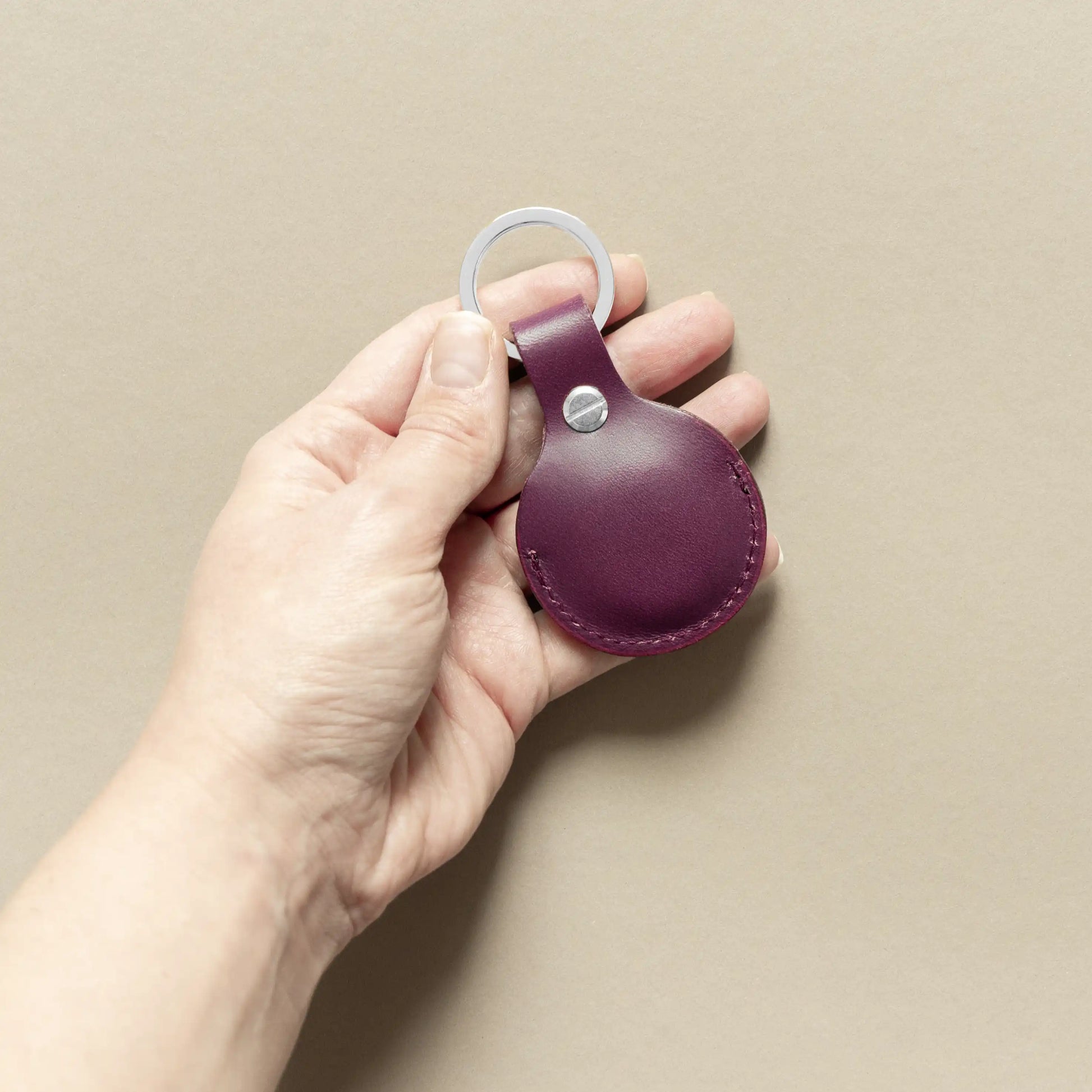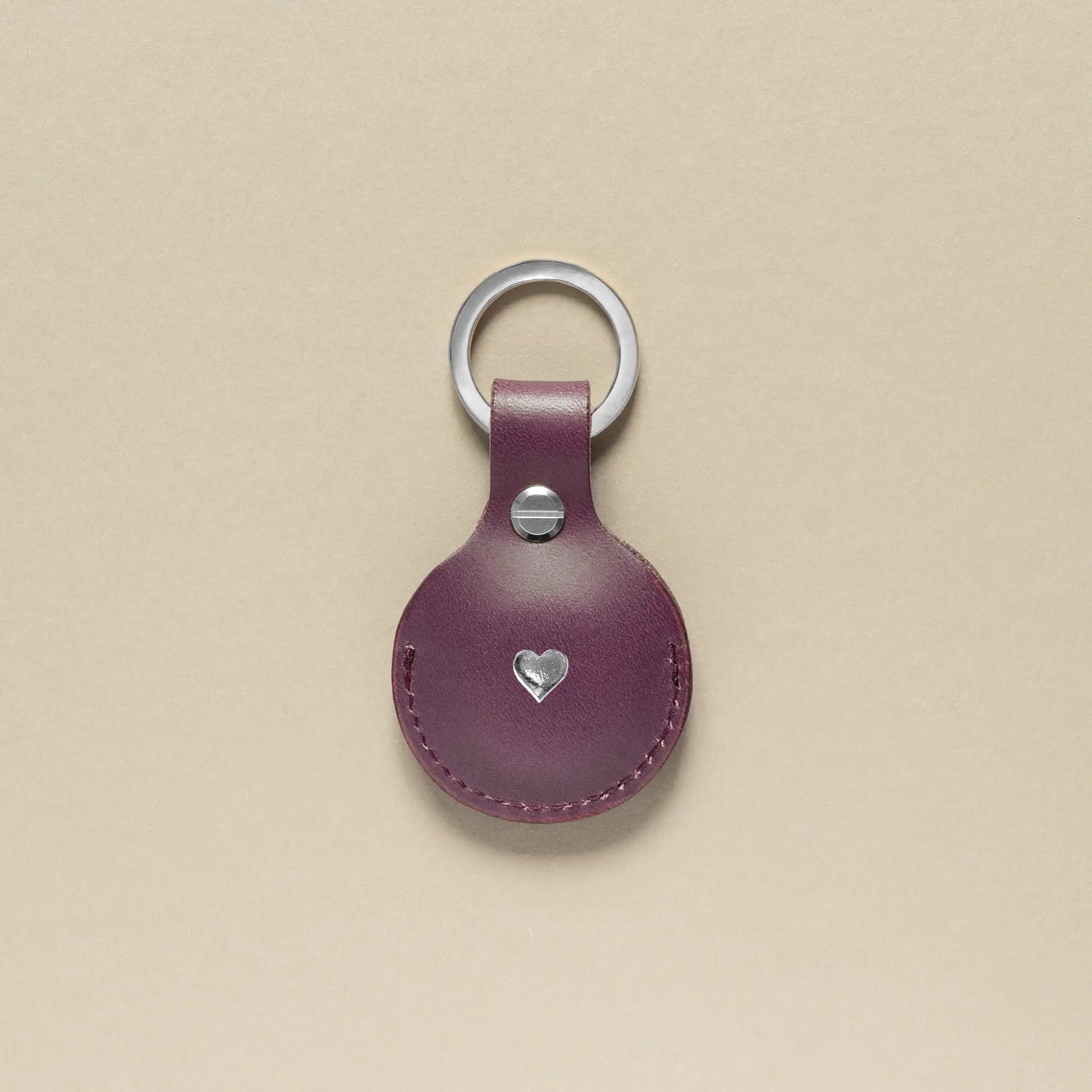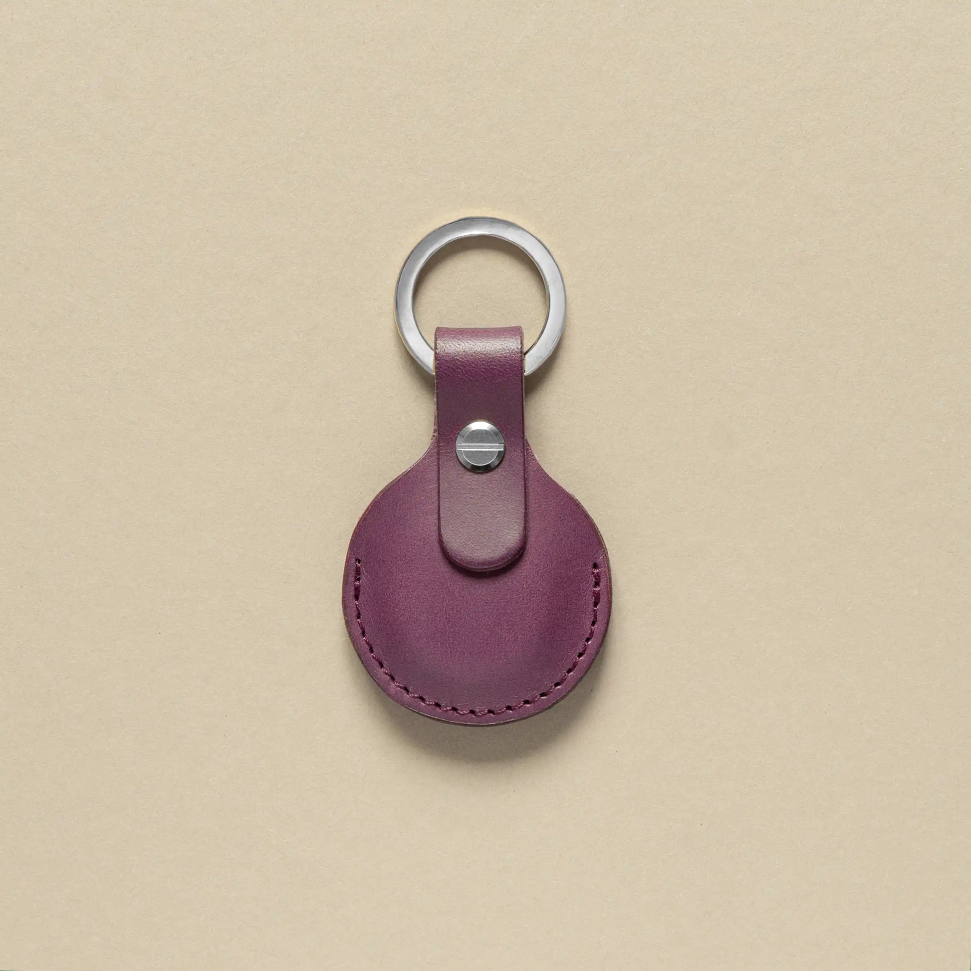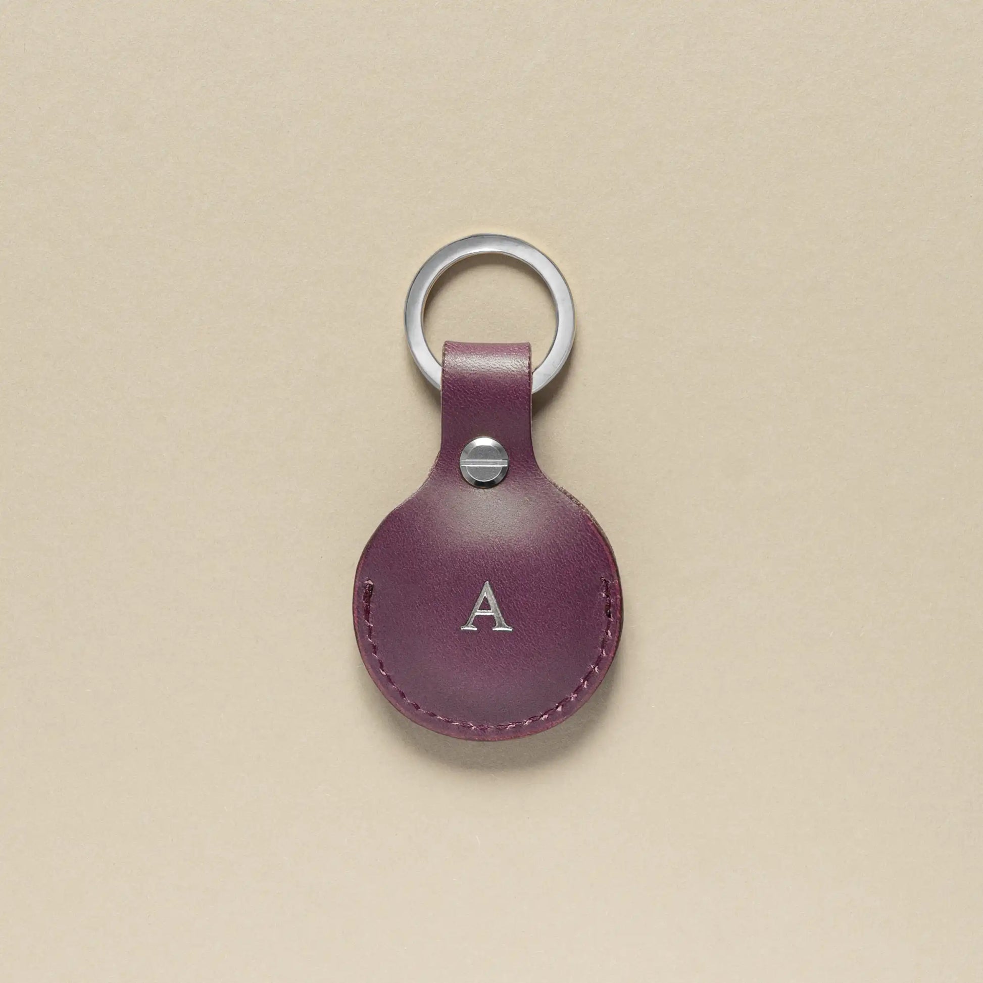AirTag Schlüsselanhänger Pflaume mit Ring Silber – aus Premium Leder