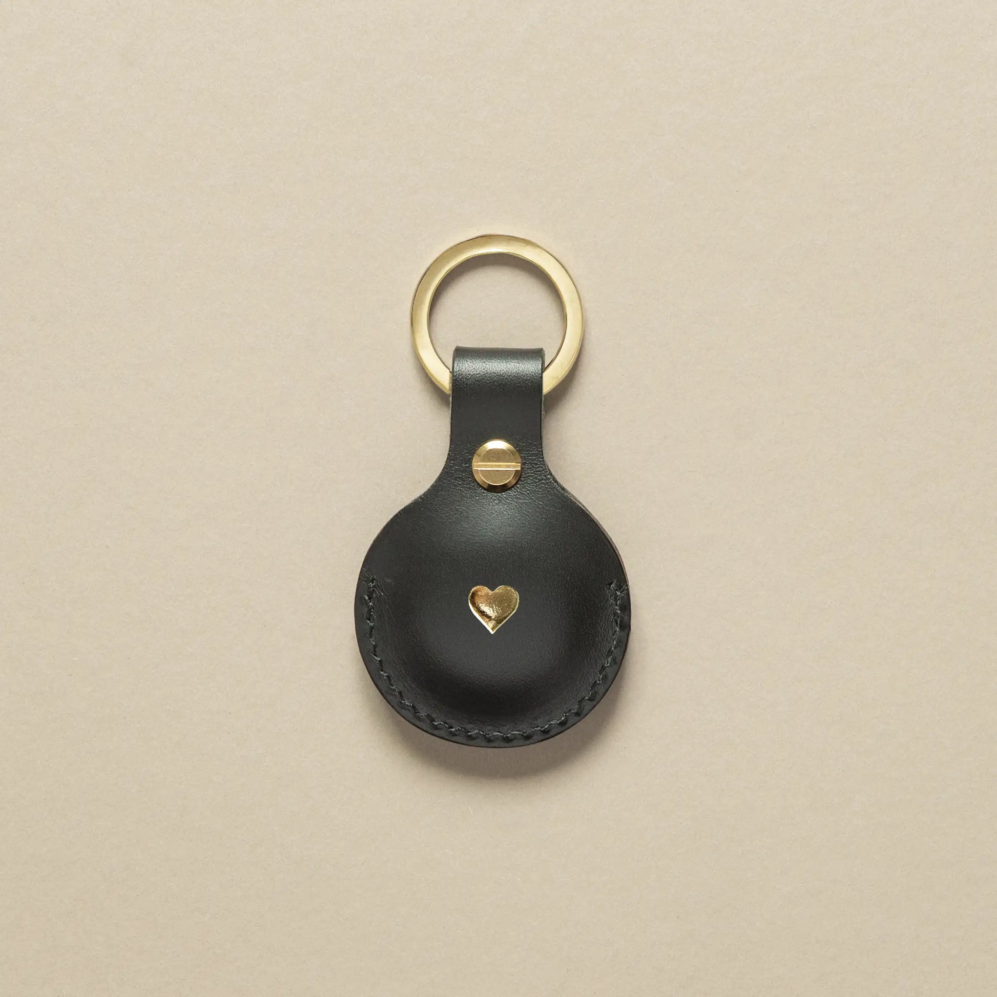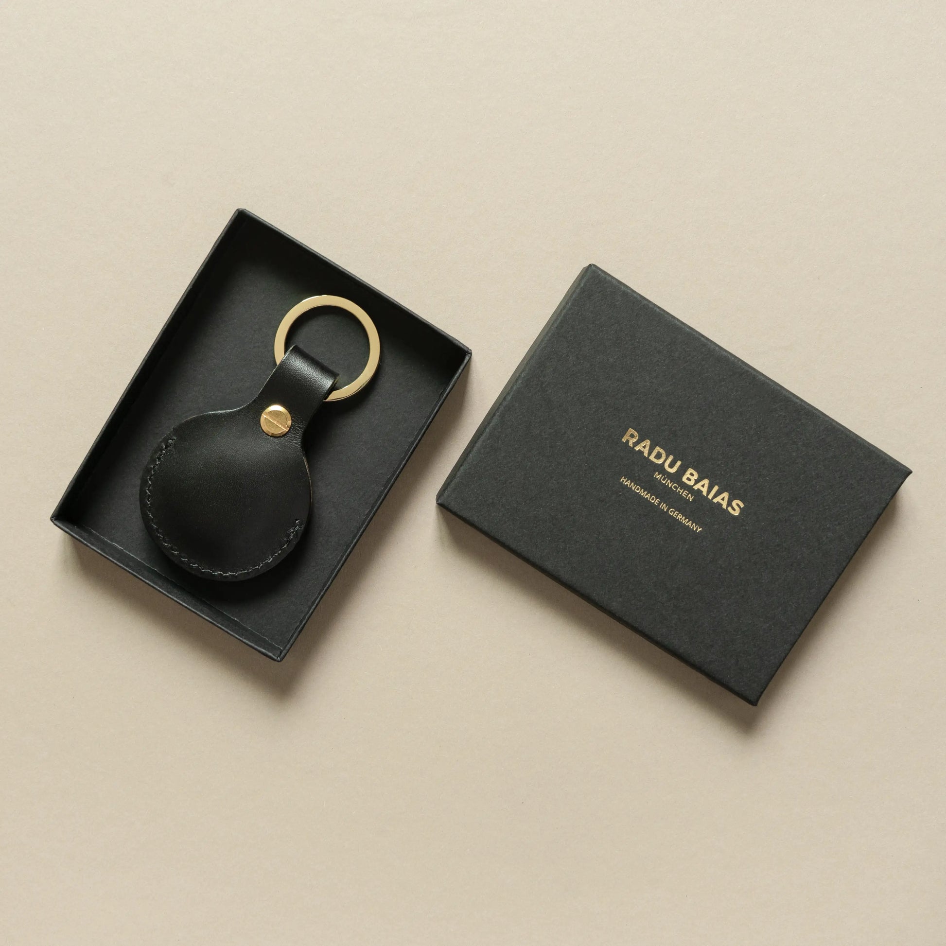 AirTag Schlüsselanhänger Schwarz mit Ring Gold – aus Premium Leder