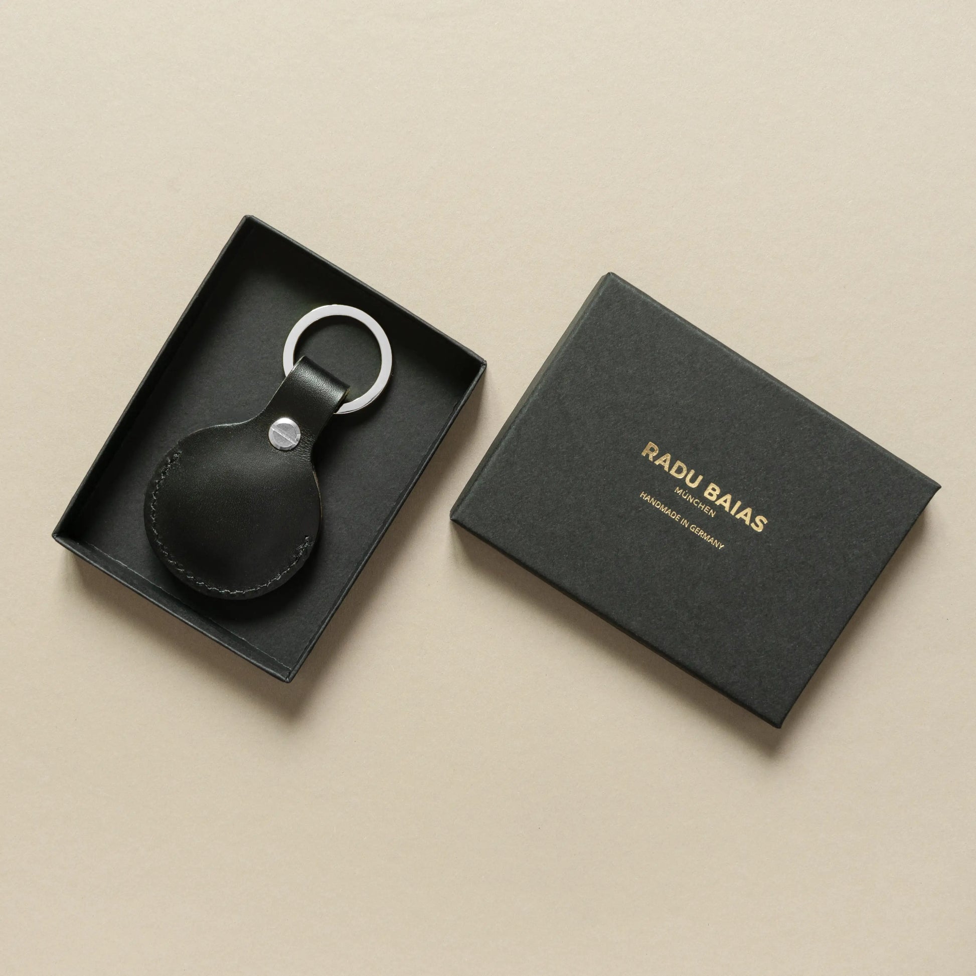 AirTag Schlüsselanhänger Schwarz mit Ring Silber – aus Premium Leder