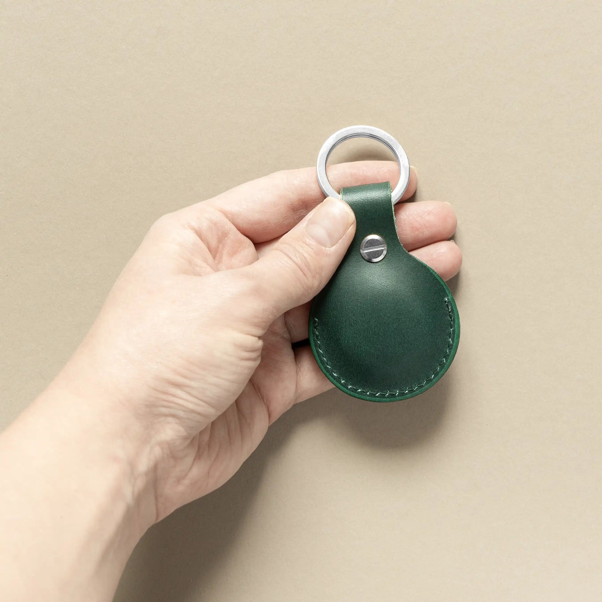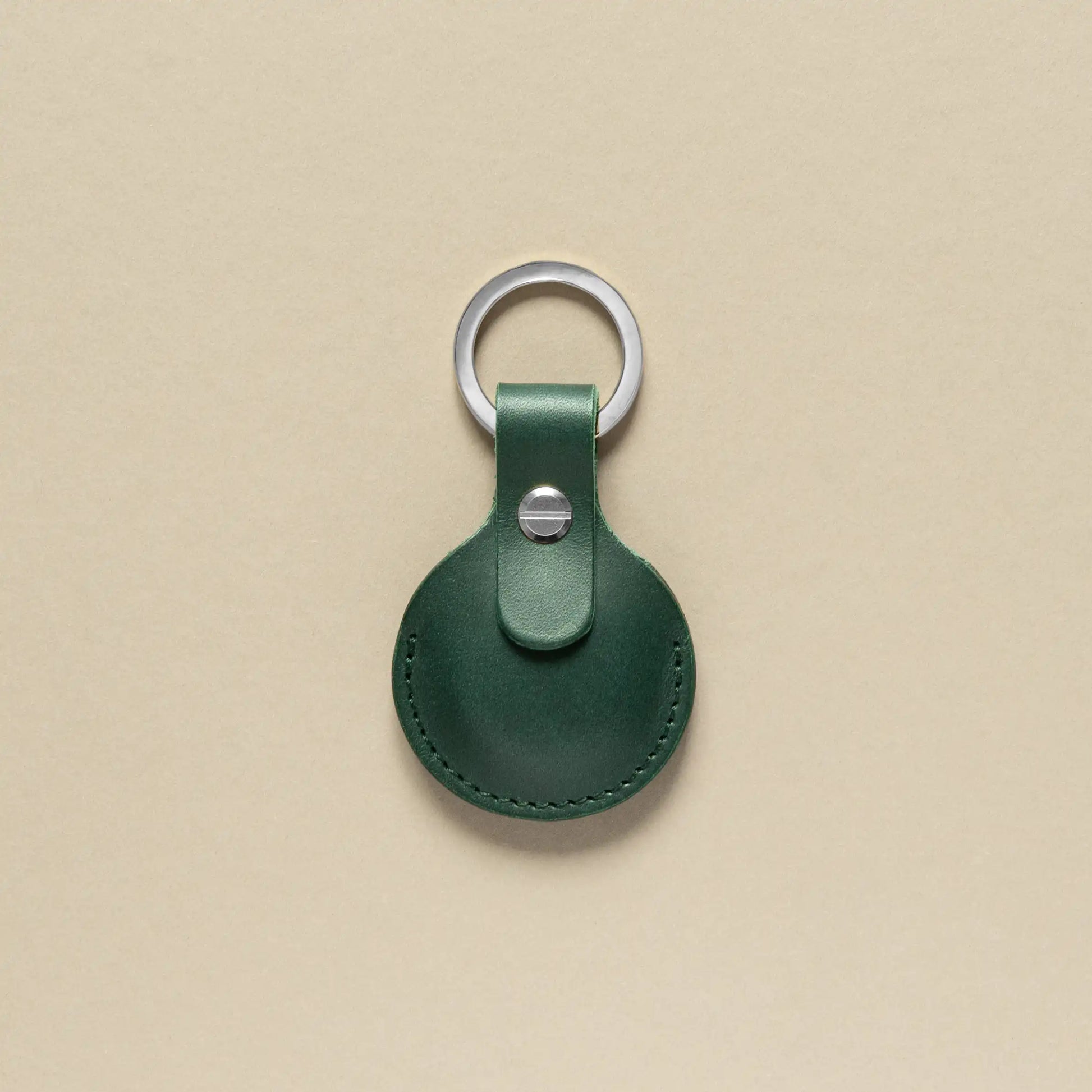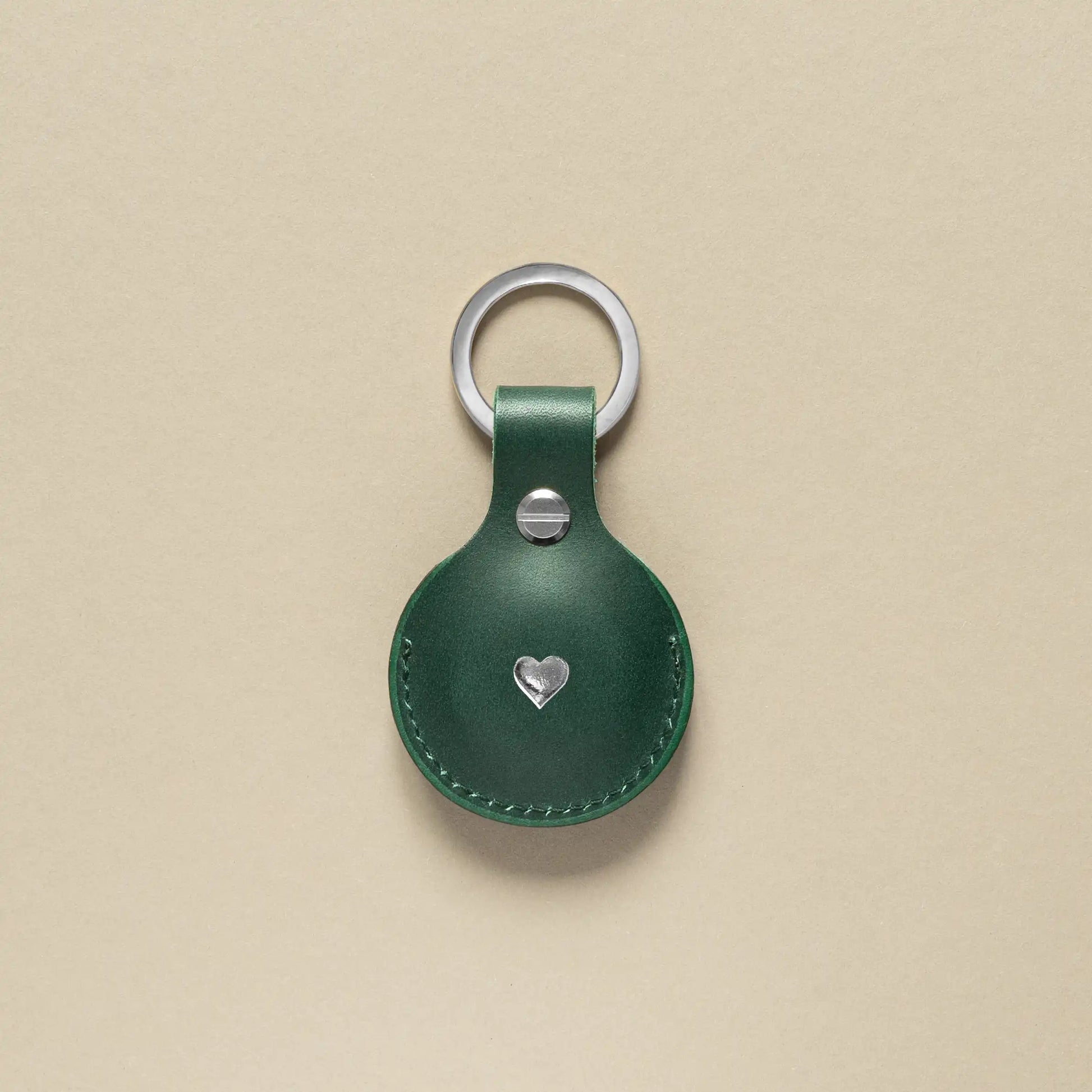 AirTag Schlüsselanhänger Tannengrün mit Ring Silber – aus Premium Leder