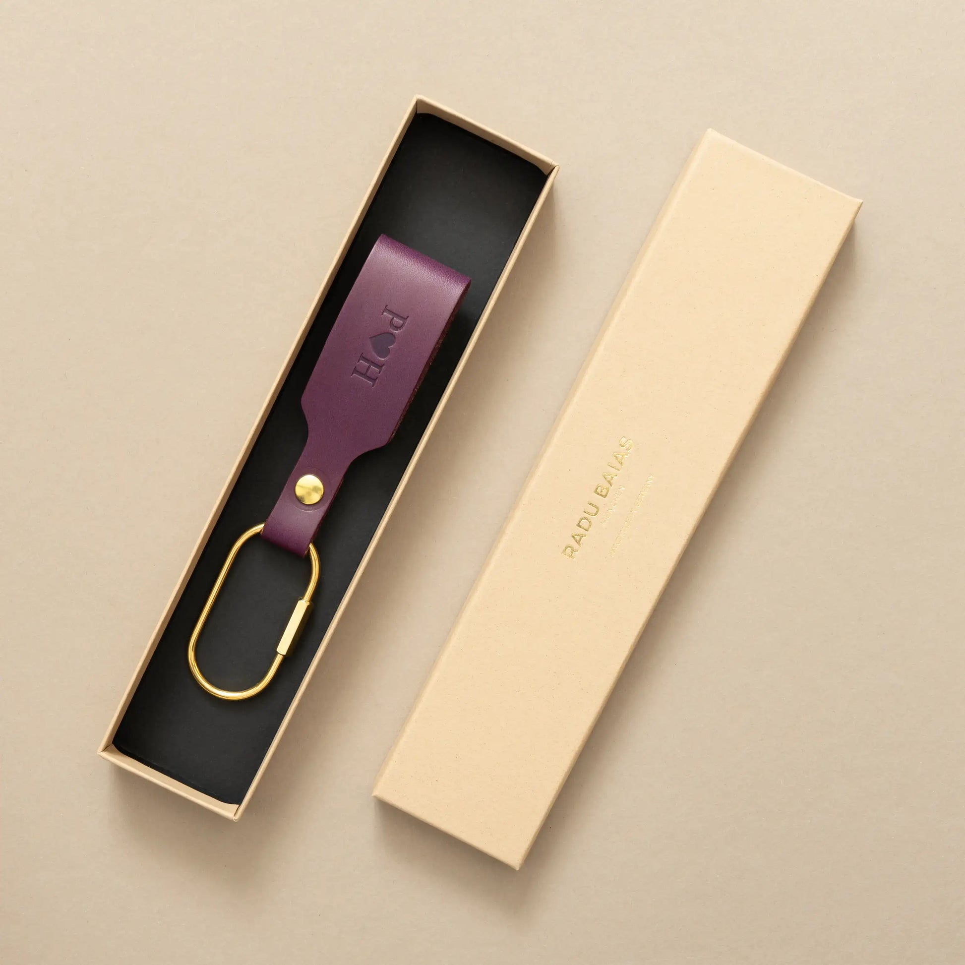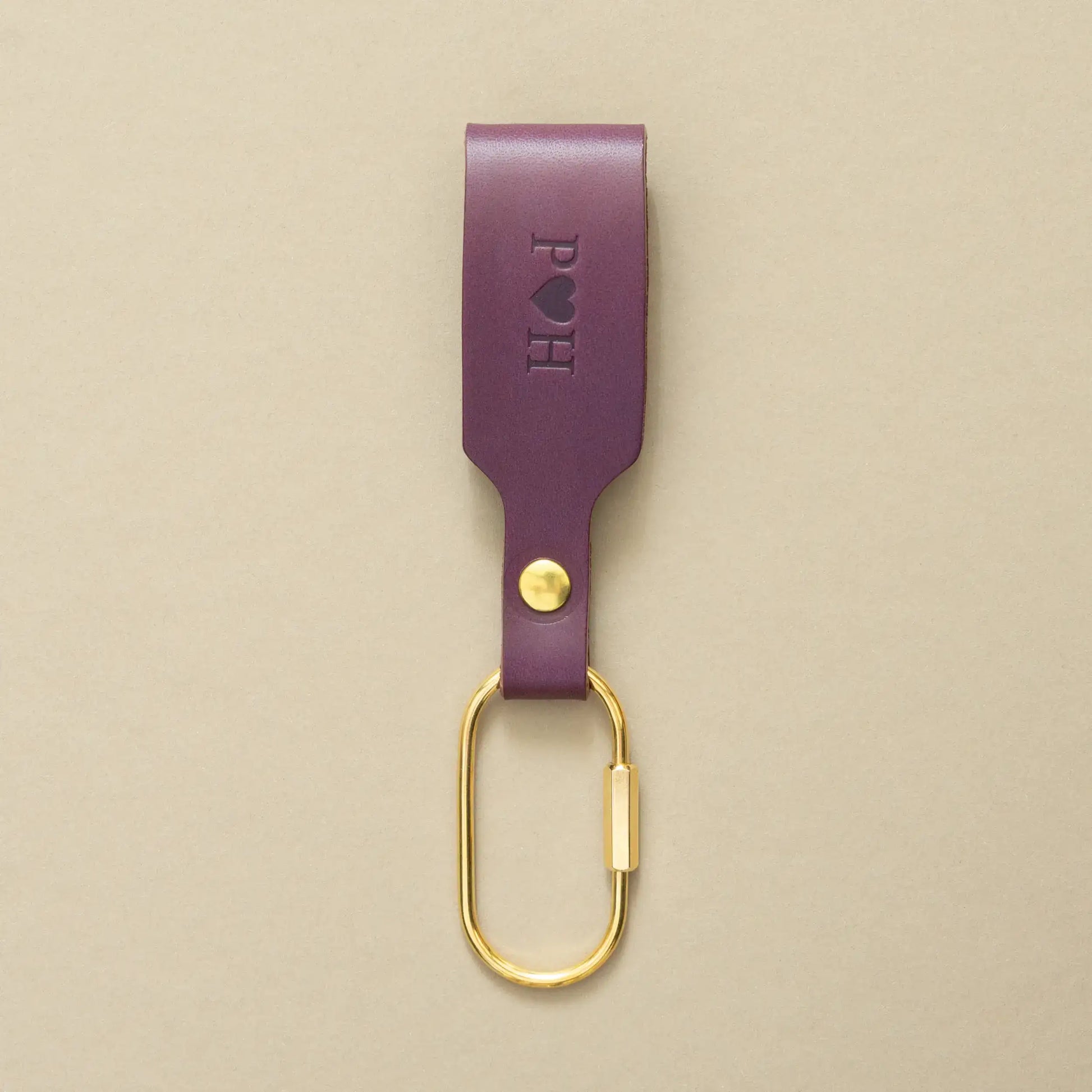 Schlüsselanhänger Pflaume mit Karabiner Gold – aus Premium Leder
