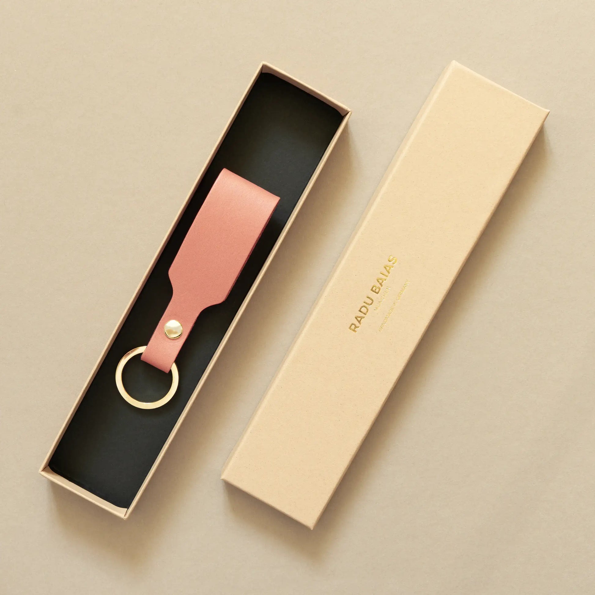 Schlüsselanhänger Rosa mit Ring Gold – aus Premium Leder