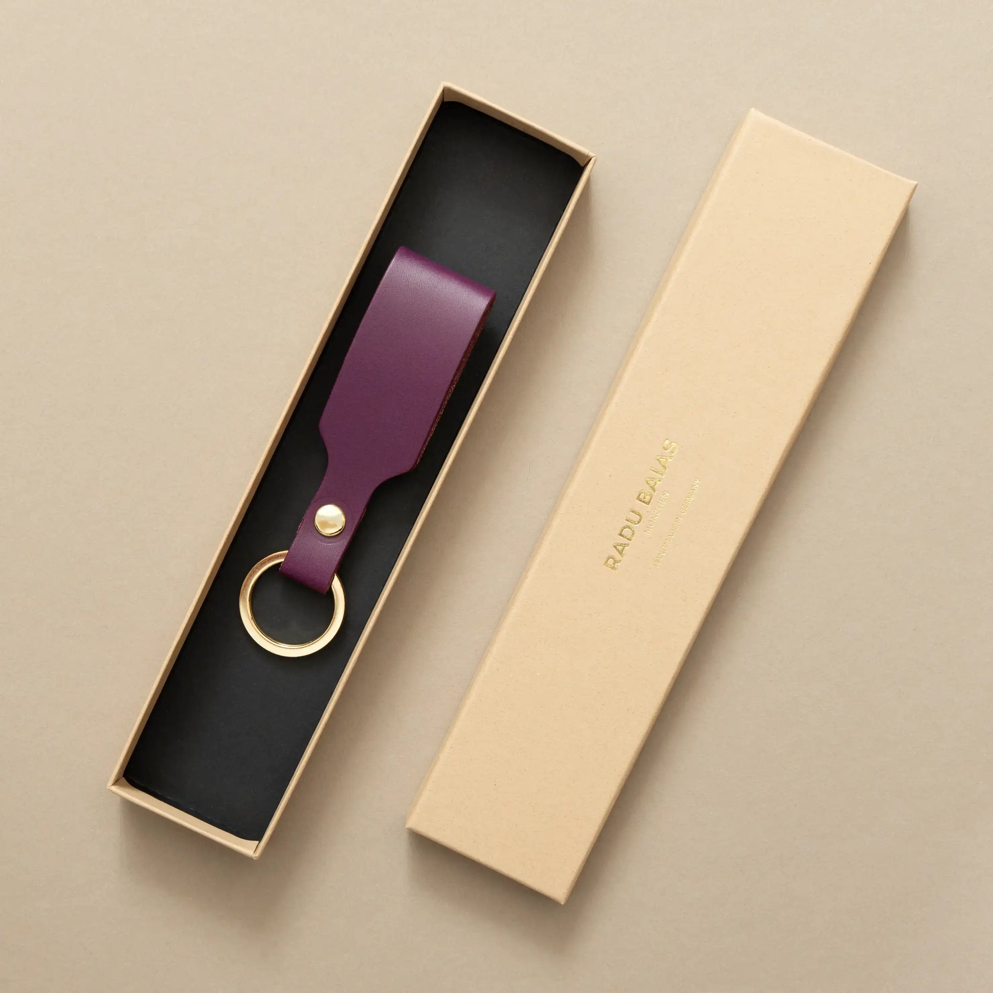 Schlüsselanhänger Pflaume mit Ring Gold – aus Premium Leder