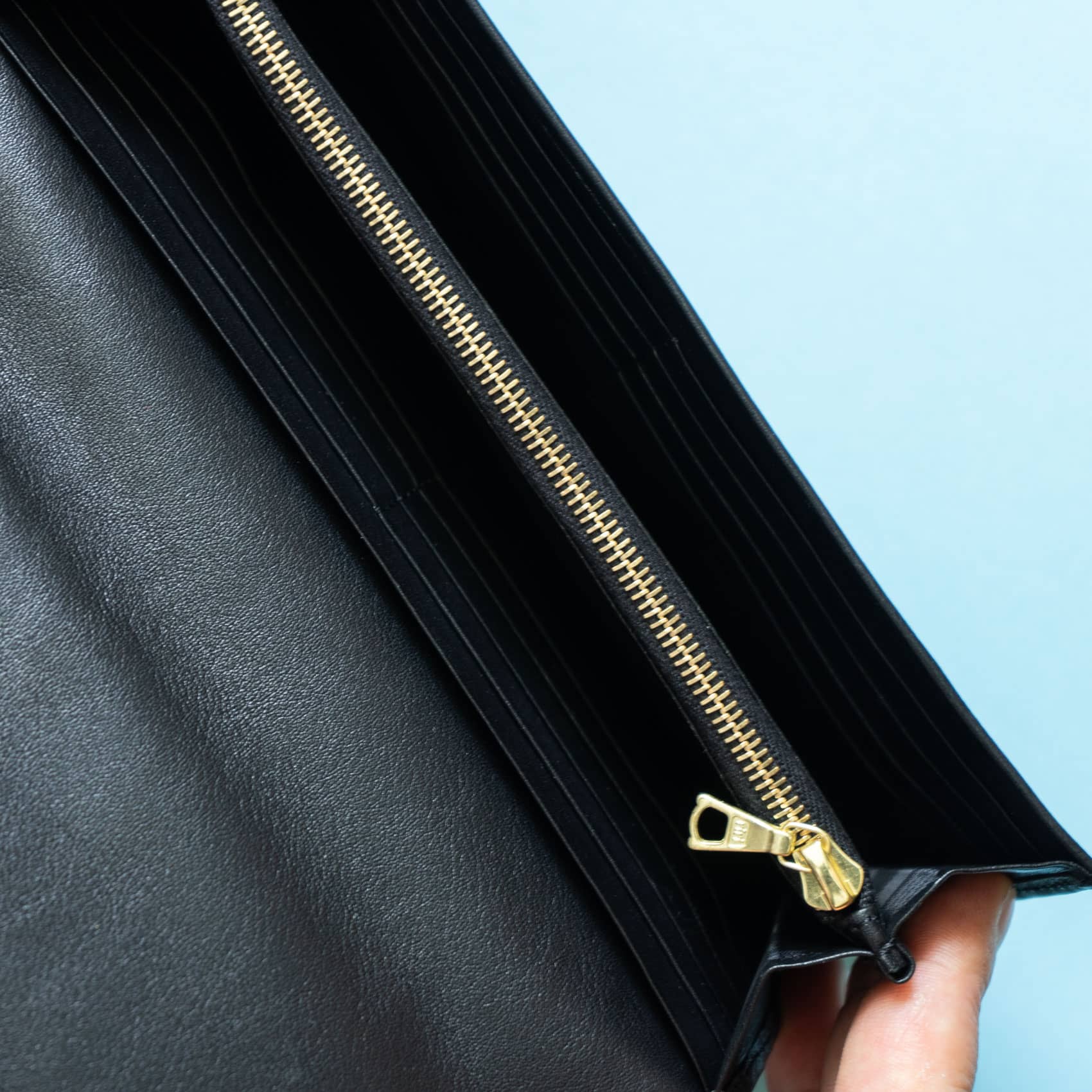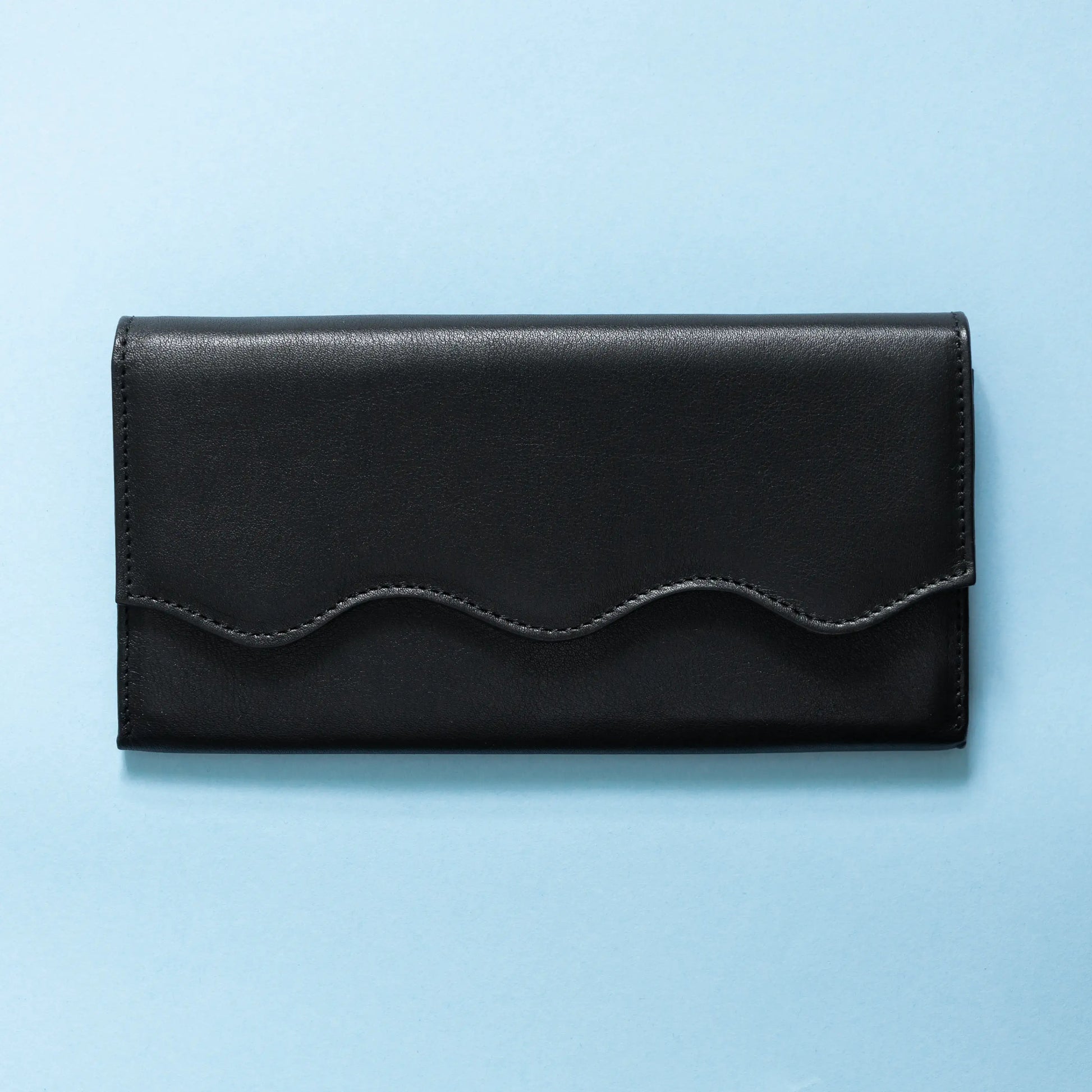 Wavy Slim Long Portemonnaie in Schwarz – aus Premium Nappaleder